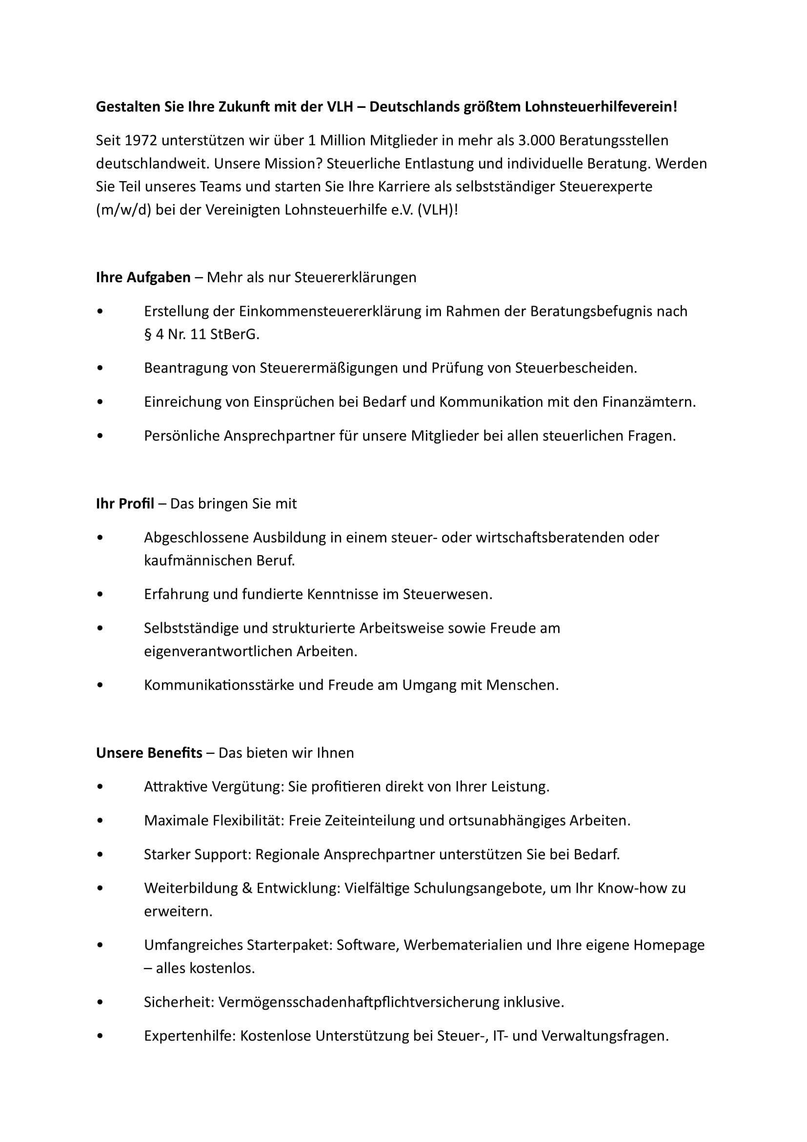 Vereinigte Lohnsteuerhilfe e.V., Regionalleitung